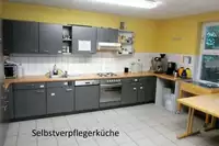 Das Haus verfügt über insgesamt 24 Betten in 4 Zimmern im 1. Obergeschoss mit Etagenduschen- und Toiletten. Ein Aufzug ist nicht vorhanden.Im Erdgeschoss befindet sich eine große, komplett ausgestattete Selbstversorgerküche (Kühlschrank, Herd, Spülmaschine, Mikrowelle, Kaffeemaschine, Geschirr, Töpfe, Pfannen und Besteck), ein Aufenthaltsraum für bis zu 30 Personen und weitere Toiletten.
