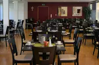 39 helle, moderne Einzel- und Zweibettzimmer mit Dusche & WC, 2 Referent*innenzimmer mit zusätzlichem Schreibtisch, Kapazität für Gruppen bis 65 Pers. Kostenloses W-Lan auch auf den Außenterrassen, Innenhof mit Terrasse, Kostenloser, hauseigener Parkplatz mit 4 E-Ladesäulen,