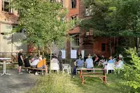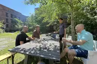 Der grüne Hof lädt mit Chillecken, Hängematten, Bänken und Tischen, Grillstelle, Tischtennisplatte zum Ausruhen, zum Essen und zu gemeinschaftlichen Aktivitäten ein. Billard- und Karambolagetisch in der Küche sind ebenso vorhanden wie ein Kickertisch und eine VR Gaming Arena, die professionell betrieben wird. Gemeinsames Kochen bietet sich in einer der beiden großen Küchen an. In einer befindet sich auch ein Profi-Pizzaofen, der vom Hausmeister betrieben werden kann. Catering-Kontakte stellen wir zur Verfügung.