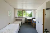 Die Zimmer der Oase sind einfach eingerichtete Doppelzimmer mit Waschbecken. Toiletten- und Duschräume befinden sich auf den Fluren.