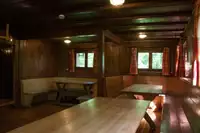 Das Selbstversorgerhaus verfügt über einen Kachelofen, der mit dem zur Verfügung stehenden Holz beheizt werden kann. Das Haus kann ganzjährig vermietet werden. Es verfügt über 16 Betten in 2,5 Zimmern verteilt. Alle Zimmer sind mit Stockbetten ausgestattet.Reinigungsmittel und eine komplett eingerichtete Küche (inkl. Kaffeemaschine, Wasserkocher, Backofen und Kühlschrank) stehen zur Verfügung. Mitgebracht werden müssen: Geschirrtücher, sowie Schwammtücher und Scheuerschwämme. Die Betten sind mit einem Matratzenschoner bezogen, Schlafsack und ein Bettlaken, ggf. auch Kopfkissen sind mitzubringen.