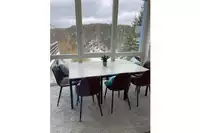 Die offene Küche ist umgeben vom Esszimmer, Wohnzimmer und dem Wintergarten. Balkon und Terrasse runden das Ganze ab, denn diese gehen beinahe komplett um das ganze Haus. Perfekte Grundlage, um den Panoramablick bequem vom Haus aus zu genießen!