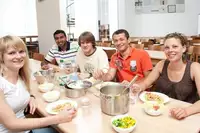 Der Aufenthalt wird den Gästen so angenehm wie möglich gemacht. Untergebracht in komfortablen Zwei- bis Acht-Bettzimmern mit eigener Dusche und WC fehlt es an nichts. Für das leibliche Wohl sorgen die Gäste selbst - dafür steht eine gut eingerichtete Selbstversorgerküche zur Verfügung. Die Küche ist das Herzstück des Hauses: Hier wird gemeinsam geschnibbelt, gerührt, gekocht und so manches exotische Rezept unter den Gästen ausgetauscht.Computer mit Internet und W-Lan Zugang im Aufenthaltsraum, Fernseh- und Leseecke, Fußballkicker.