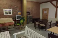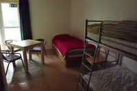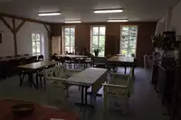 Einfache Ausstattung der Zimmer mit WC und Dusche (ein Zimmer behindertengerechtes Bad). Im Aufenthalts-/Essenraum (80 m²) befindet sich neben einer Selbstversorgerküche auch ein Fernsehgerät.Freizeit