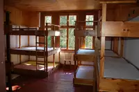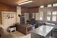 Der umgebaute Pferdestall ergänzt das Gruppenhaus um weitere 40 Schlafplätze (Matratzenlager + Stockbetten), einen großen Aufenthaltsraum mit Kamin, eine zweite Küche und Sanitärbereiche, die über den Innenhof leicht erreichbar sind.