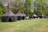 Das Haus ist ein Selbstversorgerhaus mit Schlafboden und bietet für 20 Personen Platz. Der große Tagungsraum kann selbst über einen Kachelofen beheizt werden. Zum gemütlichen Beisammensein lädt zusätzlich der große Kamin ein. Außerdem steht ein weiterer kleiner Seminarraum mit einem Kaminofen zur Verfügung.In der Küche ist alles Nötigse vorhanden (E-Herd, Kühlschrank, Töpfe, Geschirr und Besteck). Die getrennten WC´s, Wasch- und Duschräume befinden sich im Haus und werden gemeinsam mit den Zeltgästen genutzt.