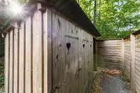 8/8 Die Plumpsklos liegen etwas abseits am Waldrand.