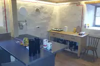 Separater Aufenthaltsraum/Blockhütte. Küche ausgestattet mit Haushaltsherd und KühlschrankFreizeit