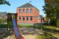 Ebenfalls vorhanden ist eine weitläufige Hofanlage, die früher als Schulhof diente sowie Picknick-Plätze, eine Tischtennisplatte, ein Spielplatz und ein Basketballfeld.