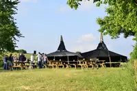 Das große Zeltgelände fasst bis zu 100 Personen. Außenwaschstellen und zwei Feuerplätze sind vorhanden.