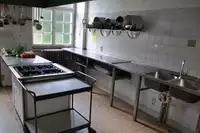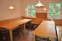 Im Erdgeschoss befinden sich zwei Schlafräume mit insgesamt 26 Schlafplätzen in Stockbetten, ein Aufenthaltsraum mit 30m2 und eine Küche, in der Geschirr und Besteck für 45 Personen sowie Küchengeräte vorhanden sind. Das Erdgeschoss mit seinen sanitären Einrichtungen, dem Eingangsbereich und den Freiflächen rund um das Haus ist rollstuhlgerecht.Im Obergeschoss befinden sich drei Schlafräume mit insgesamt 13 Schlafplätzen in Stockbetten und ein Aufenthaltsraum, die sogenannte „Stube“. Die Wohnküche auf dieser Etage ist mit Geschirr und Besteck für 20 Personen sowie Küchengeräten ausgestattet.