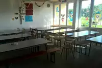 Speisesaal mit bis zu 120 Personen, abteilbar in zwei Räume mit ca. 60 m² bzw. 40 m² nutzbar als Tagungs-, Seminar-, Aufenthaltsräume..., komplett ausgestattete Großküche, Spielzimmer, Tischtennisraum, Ballspiele, 15 AutoparkplätzeFreizeit