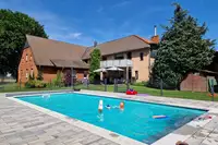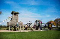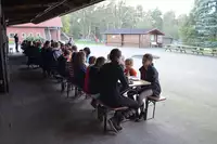 5 Blockhäuser und 4 Appartements für Ferienkinder / Familien / Schulklassen / Kindergärten / Sportvereine / Gruppen bis 50 Personen. Außerdem Aufenthaltsraum, Spielraum mit Tischtennis, Tischfußball, Bücher, Spielen, Maltafel, Kasperletheater,....Spielscheune mit Meerschweinchenbox und Hüpfburg,...Freizeit