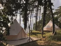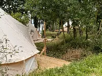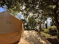 Der Natur ganz nah! Die Zelte stehen alle auf einer festen Holzterrasse. Ausgestattet mit einem festen Doppelbett (160x200), einer Kommode und einem kleinen Kühlschrank, Teppichboden und Sitzmöglichkeiten. Bis zu zwei Zustell-betten sind hier verfügbar.Weitere Zelte mit je 6 Einzelbetten, Teppich und Licht eignen sich speziell für Gruppen.