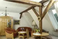 Acht stilvoll eingerichtete Ferienwohnungen für 2-4 Personen. Sie besitzen komplette Küchen mit Backofen, teilweise Cerankochfeld, Kühl-/ Gefrierkombination, zusätzliche Mikrowelle und Geschirrspüler.Unsere Ferienwohnungen bieten Ihnen einen komfortablen gemütlichen Wohnbereich oder separate Wohnzimmer mit Sat- TV, Stereo- Anlage und teilweise Kamin und Terrasse. Drei Doppelzimmer mit jeweils separatem Duschbad u. WC, TV und Aufenthaltsraum mit Balkon (Verpflegungservice / Kühlschrank möglich).