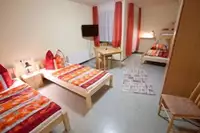 DEHOGA Mitglied, Zimmer mit DU/WC, TV und WLAN, teilweise mit Balkon. Moderne, preiswerte, rauchfreie und behindertengerechte Mehrbettzimmer. Unsere Zwei- Fünfbettzimmer verfügen über Einzelbetten und Etagenbetten. Aufzug auf alle Etagen.Bei Erstbezug ist Bettwäsche und 2 Handtücher pro Schlafplatz inklusive. Wintergarten und gemütlicher Aufenthaltsraum laden zum Verweilen und Speisen ein.