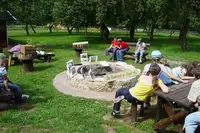 15.000m² Freigelände mit Spiel-, Sport- und Grillplatz. Streichelzoo mit Tieren wie: Kaninchen, Kleinpferde, Hunde, Katzen, Ziegen, Schafe, Schweine, Kühe uvm., Fußball, Volleyball, Tischtennis,