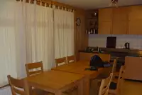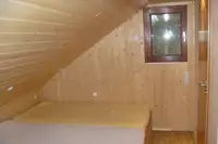 Das Haus ist hell und freundlich gestaltet, mit einer großen Fensterfront im Bereich der Küche in dem auch der große Esstisch steht. im hinteren Bereich des EG befindet sich das "Wohnzimmer" mit gemütlichen Sofas und dem Kaminofen. Unter dem Dach sind die Betten untergebracht, ein kleines Bad mit Dusche und WC ist natürlich auch vorhanden.