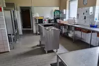 Es gibt eine gut eingerichtete Gewerbeküche mit: