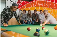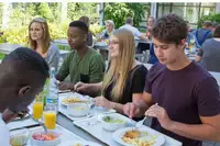 Sporthalle, Sportplätze (Fußball, Basketball), Kicker- / Billard- / Tischtennisraum, Hallenschwimmbad, Lounge mit Internetcafé, Kegelbahn, usw.