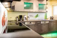 Unser Komfortpaket aus Bettwäsche, Handtüchern, Trockentüchern und Spülmaschinentabs können Sie für 12,00 € pro Person dazu buchen. WLAN kostenlos in allen unseren Wohnungen. Waschmaschine + Trockner für 2,00 € je Benutzung.