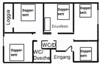 25 Betten in 7 DZ und 3 MBZ mit 3 bis 4 Betten