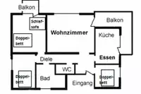 Sollten die 25 Personen nicht ausreichen, so können Sie die 100 m entfernt liegende Wohnung im Haus Am Scheidt dazu buchen. Hier ist nochmals Platz für bis zu 9 Personen. Da das Haus in einer Wohnsiedlung liegt, ist es für laute Partys nicht geeignet!
