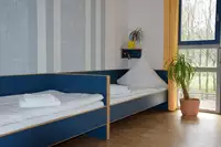 Wir verfügen über 111 Betten. Davon 48 im Gästehaus (24 Doppelzimmer) und 63 Betten im Schloss (2 Einzelzimmer, 2 Doppelzimmer. der Rest Mehrbettzimmer). 6 unterschiedlich große Seminarräume,Freizeit