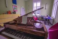 Zimmer mit Etagenbetten, Schreibtisch, Stühlen und Schrank. Jedes Zimmer hat sein eigenes Badezimmer mit Dusche, Waschbecken und WC.Wir bieten insgesamt 6 verschiedene Gruppenräume an mit unterschiedlichen Größen. Das Musikzimmer verfügt über eine Vielzahl an Musikinstrumenten. Das Highlight ist der Flügel. Die Bibliothek beinhaltet eine große Auswahl an Büchern für Leseratten.