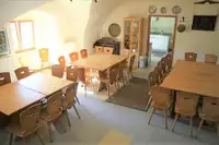 Bis zu 40 Personen können wir auf der Burg beherbergen. Die Schlafstatt ist einfach - Holzhäuser mit Etagenbett - aber wild-romantisch. In einer Großküche warten viele Töpfe auf die Befüllung, die Ihr nach eigenem Geschmack selber vornehmen dürft. Im Burgsaal kann das Mahl eingenommen werden oder auch im Rittersaal, der mit passenden Möbeln dekoriert ist. Ein offener Kamin und ein wunderschöner Radleuchter sorgen für eine authentische Atmosphäre!Freizeit