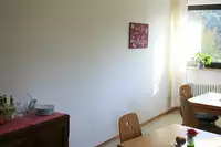 Wir können das Haus in jeder Hinsicht empfehlen - wir haben uns sehr wohl gefühlt, und unser Familienwochenende hat allen Beteiligten gut gefallen. Die Zimmer sind zweckmäßig eingerichtet und sauber, ebenso die Sanitärräume; die Küche ist geräumig und gut ausgestattet, und wir wurden als Selbstversorger sorgfältig in ihre Benutzung eingewiesen. Überhaupt war die Betreuung durch Schwester Marie-Gudrun und Schwester Rosa, die beide im Haus wohnen, sehr fürsorglich und freundlich. Wir haben uns bei schönstem Wetter fast nur draußen aufgehalten und jeden Abend lange draußen auf der Terrasse gefeiert, was verständnisvoll toleriert wurde. Der große Aufenthalts- und Speiseraum ist aber auch für vielerlei Aktivitäten geeignet und gut mit techn. Geräten ausgestattet. Interessant fanden wir auch die Geschichte der Schönstatt-Zentren und die kleine Kapelle, die zum Haus gehört, ist sehenswert.