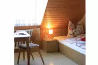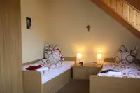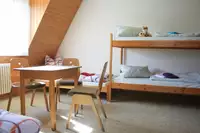 Wir bieten Ihnen drei Einbettzimmer mit Dusche und WC auf der Etage und zwei Zimmer mit zwei Betten und eigener Dusche und WC im Zimmer an. Ebenso verfügen wir über drei Doppelzimmer mit Waschgelegenheit, dazu WC und Dusche auf der Etage. Zwei Zimmer mit drei Betten und Waschgelegenheit im Zimmer. Dusche und WC finden Sie auf der Etage.Wir bieten Ihnen einen Schlafsaal mit 6 Betten und einen Schlafsaal mit 7 Betten an. Beide verfügen über zwei Waschgelegenheiten und ein WC.