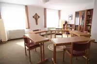 Jugend Mehrbettzimmer, 2 x 6 Etagenbetten, 17 Doppelzimmer und 1 Einzelzimmer (behindertengerecht), alle Zimmer mit Dusche und WC, Gruppen- und Konferenzräume, Vortragssaal und ein Gebetsraum für Tagungen und TreffenFreizeit