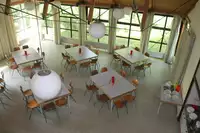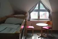 Rustikale 2-Bett und Mehrbettzimmer (Einzelzimmer für Betreuer) mit Dusche+ WC im Haupthaus & 11 Bungalows mit 4 Zweibettzimmern oder 2 Vierbettzimmern, WC+ Waschbecken tweilweise Duschen, moderne Gemeinschaftsdusch- und -sanitäranlagen im Souterrain des Haupthauses.Alle Bungalows sind beheizbar. Multifunktionssaal mit Empore, weitere Veranstaltungs- und Seminarräume vorhanden.