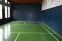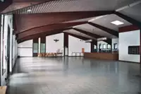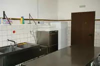Küche mit Spülmaschine, Gasherd, Gas-Kippbratpfanne, (Pizza-) Backofen, Kühlschrank, Gefrierschrank; Gruppenraum, Küche und Turnhalle mit Gasheizung, Getrennte Duschen und Toiletten für Frauen und Männer und extra Dusche mit WC (Schiedsrichterraum); 2 Ebenen (Wiesen) zum Zelten bis 130 Personen direkt neben der Halle; 25 Autoparkplätze. WLAN vorhanden.Freizeit