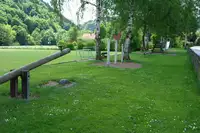 Spielwiese bzw. Zeltflächen, Kinderspielplatz, Rasenfußballplatz, Streetballanlage neben der Halle; Am Alten Gutsgarten in der Dorfmitte: Pit-Pat-Anlage, Mehrgenerationengeräte, Calisthenics-Bereich, Mensch-Ärgere-Dich-Nicht-Feld und eine Tischtennisplatte.Wanderwege mit herrlicher Aussicht. Der Eisenberg ist unser Hausberg und 595 m. hoch.