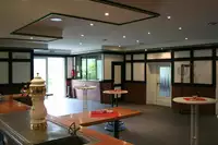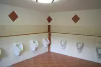 Hallenraum, Küche, Versammlungsraum, Toiletten Herren: 5, Toiletten Damen: 7, Waschgelegenheit: Damen 5, Herren 3, Anzahl der Duschen: Damen 5, Herren 6, sonstige Räume: Kühlraum, KassenraumFreizeit