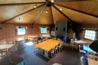 Grillhütte mit Kamin und weiteren Grillplätzen. Große Rasenfläche für Fußball, Volleyball, Federball, Boule usw. Spielplatz mit Schaukel und Klettergerüst, Außentischtennisplatten.Verleih von: Spielgeräten u.a. Badminton, Beachtennis, Boule, Dart, Wikingerschach, Volleyball, Basketball.