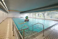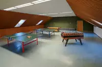 Schwimmbad (8,00 m x 16,60 m) max. Tiefe 1,35 m, Sauna und Sporthalle (24,00 m x 12,00 m) im Haus, Tischtennisraum mit Tischkicker, Discokeller, Tagungsmedien, WLAN, Beamer, TV, Stereoanlage, Klavier, Spielesammlungen, Ballverleih, Getränke- und SnackautomatFreizeit