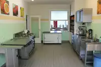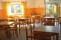 Speise-/Tagesraum (60 m²), Tagesraum (mit Terrasse und Kamin (50 m²), Medien auf Nachfrage, Internetanschluss in Planung, TischtennisKüchenausstattung: Großküchenherd, Geschirrspüler, Mikrowelle, Kühlschrank, Backofen, Kippbratpfanne
