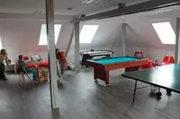 Spiel- und Theaterschiff, großer Garten, Lagerfeuerplatz, Grillplatz, Volleyballplatz, Fußballfeld, Wandern, Radfahren, Basketballplatz, Museen, Theater, Schwimmhalle 10 Minuten, Sternwarte, Fußballkicker, Tischtennis, Billardtisch, SpielplatzAusflugsziele
