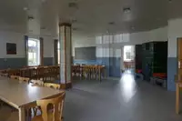 Als Basislager für einige Konzerte in der Region hatten wir das Schullandheim Ristedt für uns als Quartier erkoren. Es war eine sehr gute Wahl! Sowohl zum Proben, als auch zum Spielen, Basteln und Chillen ist es super geeignet! Die Zimmer der Mädels sind erfreulich geräumig und es gibt Betreuerzimmer in ausreichender Anzahl. Dazu zwei Gemeinschaftsräume, so dass wir unser Proben- bzw. Bastelzeug nicht zu jeder Mahlzeit wegräumen mussten. Die Küche hat die Kapazität, darin gemeinsam zu kochen. (Bei uns hatten immer 8 Mädels gemeinsam Küchendienst.) Wunderbar auch die Spülküche mit der superschnellen Spülmaschine. Alles in allem also auch von uns eine klare Empfehlung!!