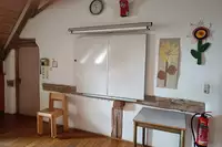 Mehrzweckraum, Speiseraum, 2 Lehrerzimmer, Fernseher, Video, Diaprojektor, Digitalkamera, Camcorder, Beamer, Laptop, Kopierer, Tageslichtprojektor, päd. Handreichung, Kreisheimatstube Stoffenried (Führungen, Kurse, Steinbackofen)Freizeit
