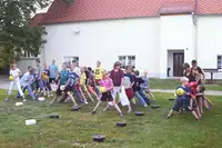 Bungalowdorf: Saal 200 Plätze, Kellerbar 25 Plätze, Multifunktionsraum 35 Plätze Außenbereich: Tischtennisplatten, Groß-Dame-Spiel, Außenkegelbahn, Beachvolleyballfeld, Bolzplatz 30 Autoparkplätze