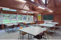 4 Seminarräume und ein Seminarraum für eine kleine Gruppe, 2 Aufenthaltsräume für Lehrkräfte, 2 Speisesäle davon einer zum Teilen, Sporthalle, Kreativ-Werkstatt, mehrere Aufenthaltsbereiche, Kiosk.