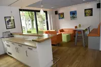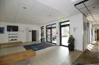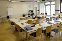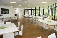 25 m Schwimmhalle mit 1 m, 2 m und 3 m Sprungbrett, Sporthalle mit Kletterwand, Tischtennisplatten und sonstigen üblichen Geräten einer Sporthalle, Sauna, 3 Seminarräume mit Overheadprojektor, Beamer, Fotokopiergerät, Fernsehgerät, Videorecorder, Videokamera, Stereoanlage,Freizeit