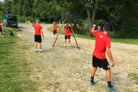 Bei schlechtem Wetter steht unseren Gäste eine kleine Spiel- und Bewegungshalle zur Verfügung in der verschiedene Ballsport- und Kooperationsspiele gespielt werden können.