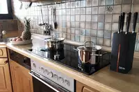Damit Ihr Reisegepäck nicht zu groß wird, stellen wir eine Erstausstattung an Hand- und Duschtüchern, Bettwäsche, Seife und Shampoo, Waschmittel und Spültabs zur Verfügung. Bügelbrett/Bügeleisen, Waschmaschine/Trockner sind vorhanden.