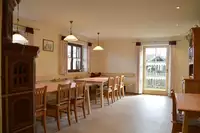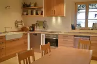 Aufenthaltsraum mit Fußbodenheizung, voll ausgestattete Landhausküche mit Spülmaschine; Tischtennis, Fußballkicker; 3x WC und 3x Dusche. Weitere Zimmer (mit DU/WC) stehen Ihnen im Haupthaus zur Verfügung;Schöne Terrasse zum Grillen und gemütlichen Beisammensein vorhanden; Lagerfeuerplatz;