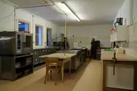 Rezeptions-/Empfangsbereich, Aufenthalts- und Speiseraum (trennbar in zwei Räume zu 30/25 Personen), Theke bzw. Essensausgabe - große Küche mit Durchschubspülmaschine, Konvektomat und viele weitere Küchengeräte, verfügt über einen zusätzlichen abgetrennten Kühl- /Aufbewahrungsraum. - beheizter Skikeller, 2x Damen WC´s, 2x Herrenurinal, 1x extra WC
